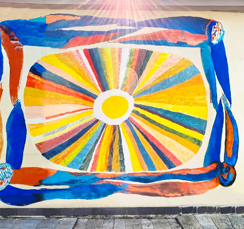 Così la casa si rivela, si offre al quartiere attraverso la forza silenziosa dell’arte, con una superficie viva, che raccoglie memorie, pensieri e visioni condivise, e restituisce dignità e bellezza a chi, spesso, queste cose sono negate.